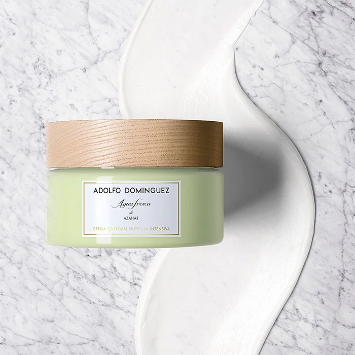 De textura en crema sedosa y fundente, Agua Fresca de Azahar Crema Corporal de Adolfo Domínguez es apta para todo tipo de pieles.