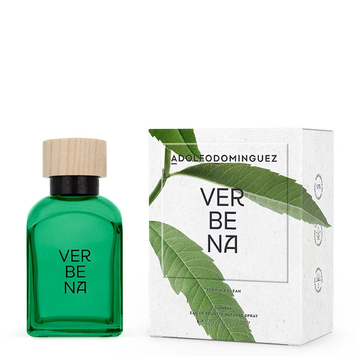 El frasco mítico de Adolfo Domínguez Verbena Jengibre Eau de Toilette verde que deja ver su color revitalizante transmitiendo frescura y optimismo. Fabricado con vidrío reciclado, reciclable y reutilizable de por vida, gracias al nuevo diseño de vaporizador en sistema de rosca. Una propuesta sostenible de Adolfo Domínguez que incluye un 97% de ingredientes de origen natural, pensando en nuestro bienestar y en el medioambiente. El tapón es 100% de madera FSC y 0% plástico.