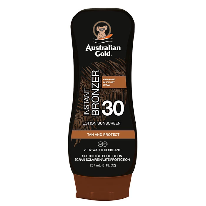 Lotion Sunscreen with Instant Bronzer SPF30 de Australian Gold es un solar de media alta protección con auto bronceador.