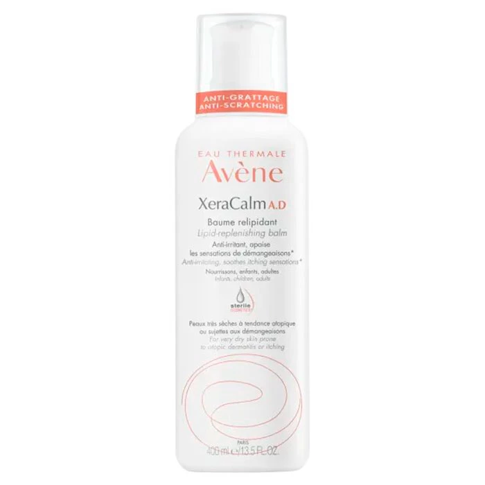 XeraCalm A.D Bálsamo Relipidizante de Avène es un bálsamo corporal que calma intensamente el picor y restaura los lípidos en piel irritada, seca o con dermatitis atópica.