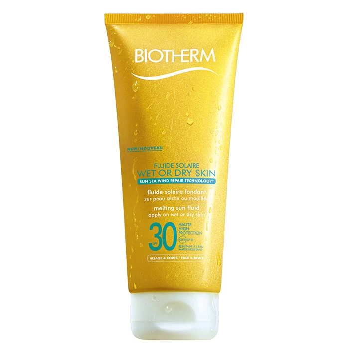 Fluide Solaire Wet or Dry Skin SPF30 de Biotherm es un protector solar medio alto de rostro y cuerpo.