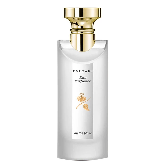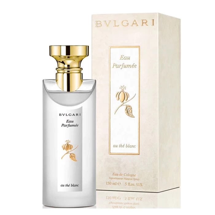 Para resaltar la figura del té blanco, el perfume Bulgari Eau Parfumée au Thé Blanc se presenta en un frasco igual que el perfume original Eau Parfumée au Thé Vert, pero en tono blanco glacial con detalles en plata, un diseño que mantiene la línea elegante y sofisticada de la prestigiosa firma.