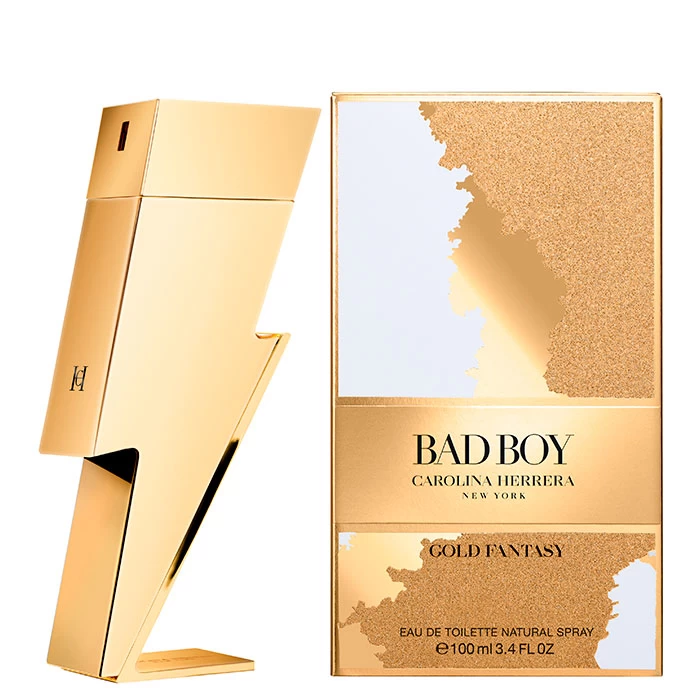 Carolina Herrera Bad Boy Gold Fantasy es una lujosa edición limitada de coleccionista del icónico perfume Bad Boy, esta vez en un frasco cubierto en oro reluciente que irradia lujo y refleja el juego de luces y sombras que define esta esencia electrizante.