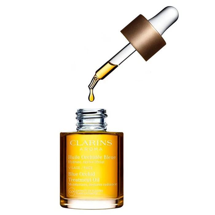 Huile Orchidée Bleue de la marca Clarins, es un tratamiento hidratante, facial, en aceite.