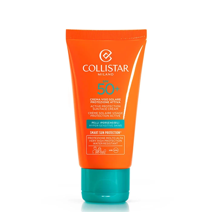 Crema Facial Protección Activa SPF50+ de Collistar es una crema de muy alta protección solar para pieles sensibles o reactivas.