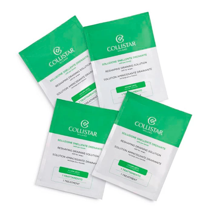 Cada kit contiene 4 bolsas rellenables monodosis para todo tipo de piel, apto durante la etapa de embarazo. Con Collistar Soluciones Adelgazantes Drenantes podemos efectuar un tratamiento de choque profesional en casa con la máxima garantía y efectividad. Los tejidos se esculpen y afinan, lucen suaves y firmes.
