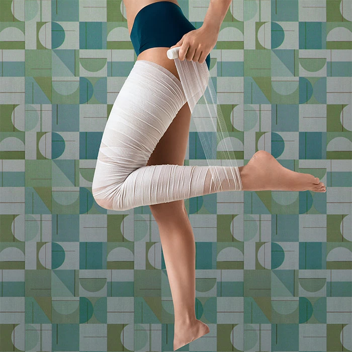 Esta solución formulada libre de alcohol con extractos naturales contiene sal, cafeína, escina, jengibre y centella asiáticacuya acción de choque permite remodelar y drenar los tejidos de las piernas, glúteos, brazos, piernas y caderas desde la primera aplicación. Su ligera textura facilita la máxima impregnación de las vendas remodeladoras de modo intenso para cada sesión del tratamiento.