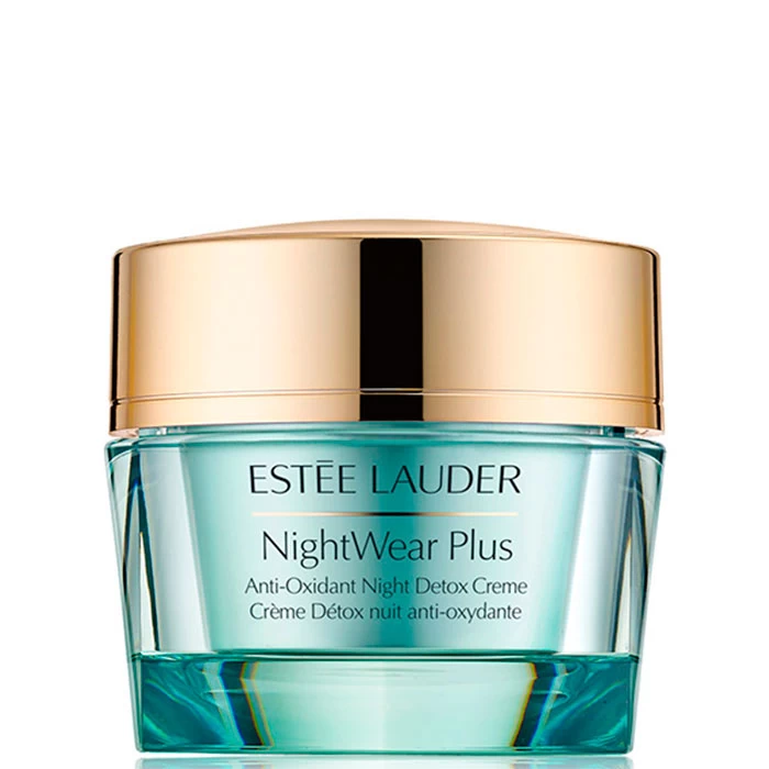 NightWear Plus Anti-Oxidant Night Detox Creme de Estée Lauder, es una crema facial hidratante y anti-oxidante, de tratamiento nocturno.
