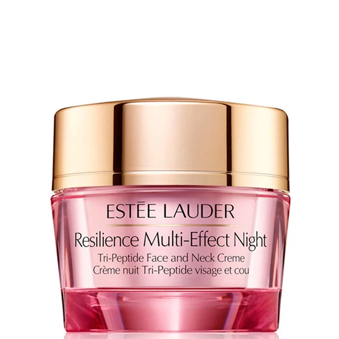 Resilince Multi-Effect Night Tri-Peptide Face and Neck Creme de Estée Lauder es una crema de firmeza y nutrición para la noche.