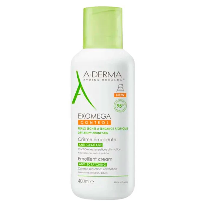 Exomega Control Crema Emoliente de Aderma es una crema para rostro y cuerpo que calma la piel irritada de bebés, niños y adultos.