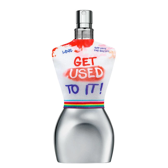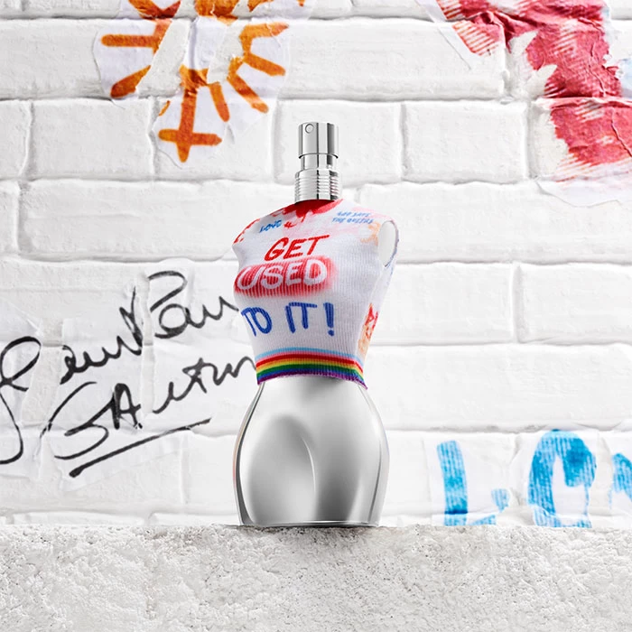 El frasco Jean Paul Gaultier Classic Pride 2023 Eau de Toilette inclusivo de edición limitada, diseñada para todo el mundo, muestra con orgullo un cuerpo cromado luciendo una camiseta marinera de tirantes Gaultier que comparte los mismos valores coloridos con una estampa de arte callejero de su desfile de primavera-verano de 1994 que proclaman alto y fuerte los valores del diseñador. El envase icónico como si de una pared se tratase, reivindica a través del arte callejero #GetUsedToIt, una colonia sin género para todo el mundo.