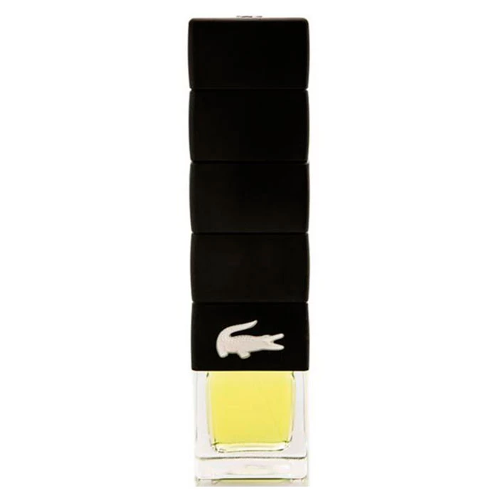 El frasco que guarda la fragancia de Lacoste Challenge es de líneas rectas y sobrias de forma alargada que deja ver a la perfección el jugo amarillento y coronado por un tapón negro con el logo de Lacoste en su centro.