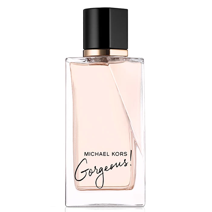 El frasco de Michael Kors Gorgeous! de vidrio robusto y transparente, tiene un diseño llamativo inspirado en los atrevidos cortes arquitectónicos de la colección de moda de la firma.