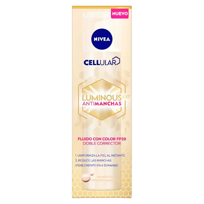 Cellular Luminous630 Antimanchas Fluido Color de Nivea, ofrece un tono natural y cubre las imperfecciones.