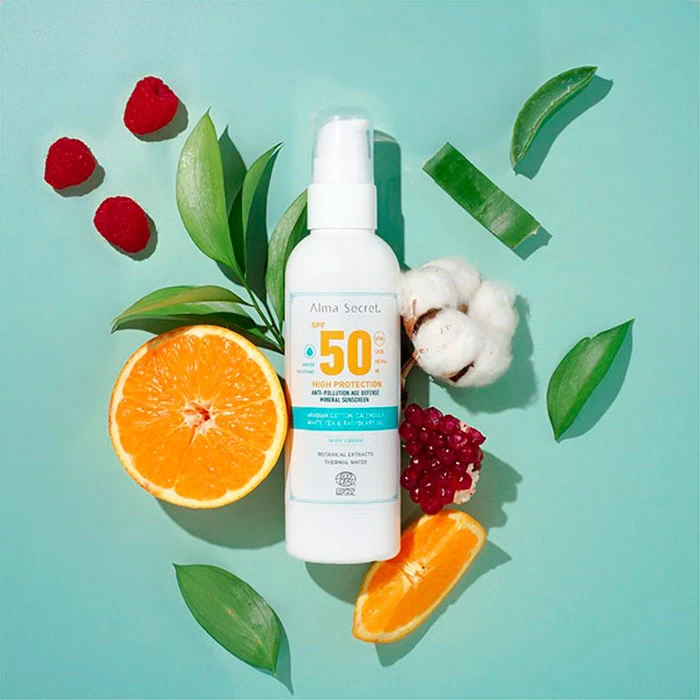 Protector Solar Facial y Corporal SPF50 de Alma Secret es una crema solar de alta protección que refuerza las defensas de la piel.