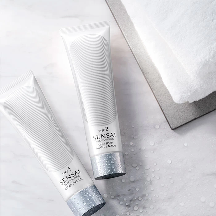 Sensai Silky Purifying Mud Soap (Wash & Mask) es un jabón y mascarilla facial argiloso, 2 en 1 que forma parte del segundo paso del exclusivo sistema de limpieza facial de Sensai.