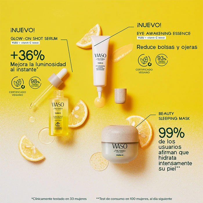 Recomendado para despertar la mirada y potenciar su belleza natural en todo tipo de piel. Con Shiseido Waso Yuzu-C eye Awakening Essence se favorece el aumento de luminosidad en un 36%, la mirada luce más fresca, vital y radiante.