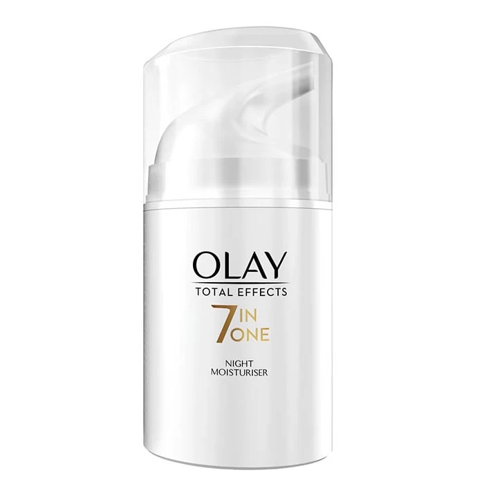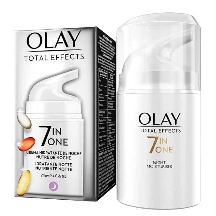 De textura ligera, no grasa, facilita su rápida absorción y evita la obstrucción de los poros, ha sido testada dermatológicamente. Olay Total Effects Crema Reafirmante de Noche está indicada para regenerar, hidratar, minimizar la apariencia de los poros, suavizar y uniformizar la textura, atenuar manchas, líneas de expresión y arrugas. La piel restaura visiblemente luminosidad luciendo un rostro más terso y radiante al despertarse.